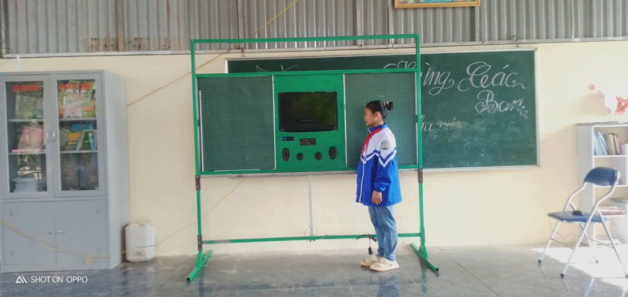 Bảng viết truyền thống được đặt cố định gây khó khăn cho việc trình bày của giáo viên và hạn chế tầm nhìn của học sinh. Vậy làm thế nào có thể khắc phục được những khó khăn trên đồng thời cũng có thể tiết kiệm được thời gian, lắp đặt thiết bị để tiết dạy ứng dụng công nghệ thông tin được nhanh chóng và đơn giản? Tôi đã suy nghĩ để tìm ra giải pháp”, thầy giáo Phạm Thu Trang kể.