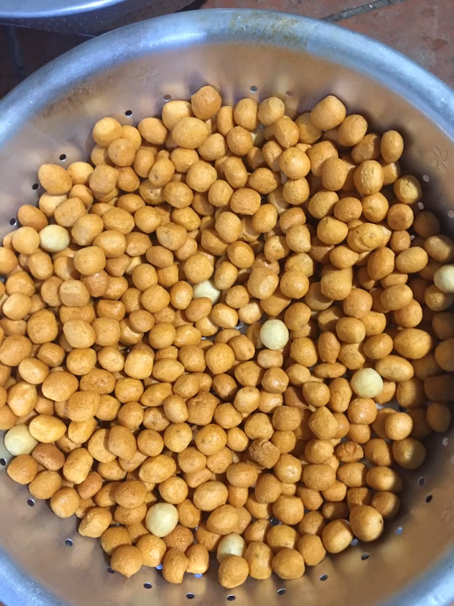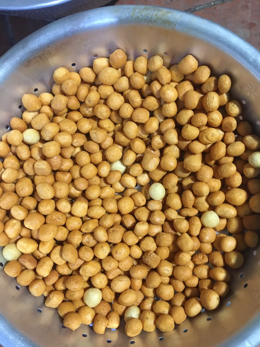 Bánh phơi khô đem thả sôi trong chảo dầu cho nở bung, xốp, giòn và ngả sang màu vàng nhạt là được. Tiếp đó cho vào chảo đường đun sôi, đảo đều, sao cho lớp đường mỏng phủ kín bề mặt.