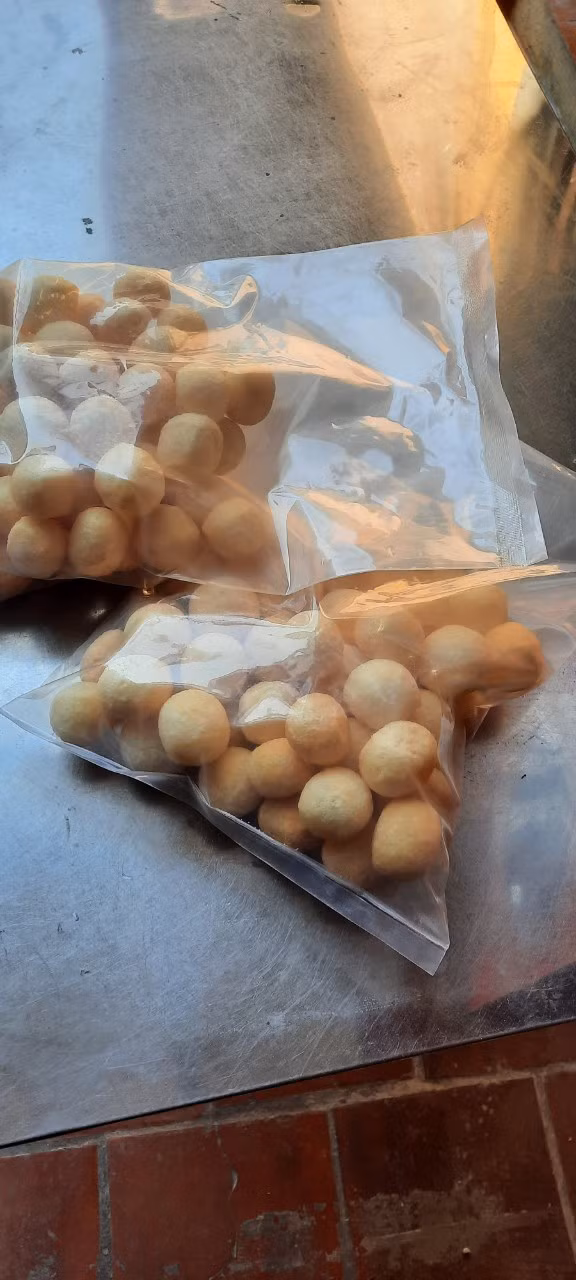 Khoai sọ luộc chín, bỏ vỏ, phần lõi trắng ngần của khoai đem giã cùng xôi vừa đồ. Khi bột nhuyễn, mịn, sánh thì đổ ra và cán, cắt thành những viên nhỏ. Người thợ không cắt bằng dao mà dùng thanh tre nhỏ như chiếc đũa tẩm bột áo, đưa đi đẩy lại khéo léo xắt những viên bột tròn đều tăm tắp như những viên bi.