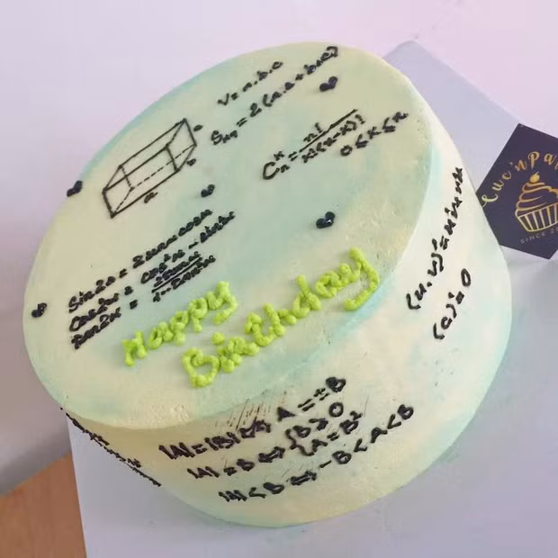 Thực chất, nó vẫn chỉ là những chiếc bánh sinh nhật thông thường, tuy nhiên ở phía trên được viết chi chít các thể loại công thức toán học.