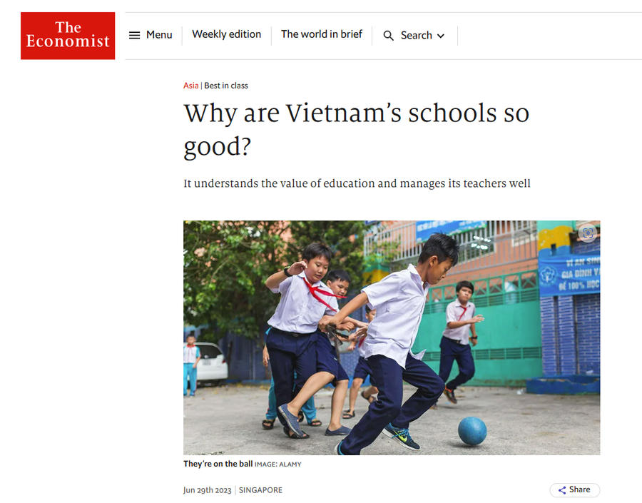 Tờ báo trên cho rằng điều này được phản ánh qua thành tích xuất sắc của học sinh trong các đánh giá của quốc tế về khả năng đọc, làm toán và khoa học.