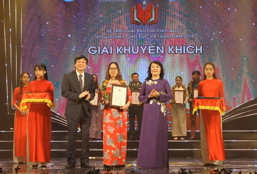 | Lễ trao giải Báo chí toàn quốc “Vì sự nghiệp Giáo dục Việt Nam” năm 2018 được tổ chức long trọng tại Trung tâm Nghệ thuật Âu Cơ, Hà Nội. |