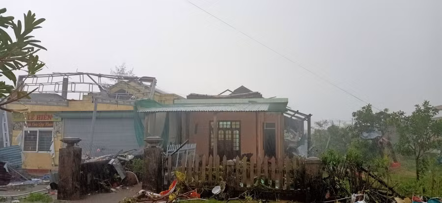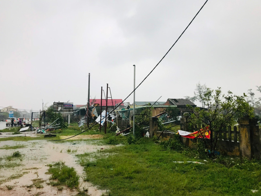 Người dân địa phương cho biết, vào khoảng 15h20, đi kèm với cơn mưa lớn, là một luồng gió mạnh quét qua. Chỉ một thời gian ngắn, nhưng phần mái ở chợ thị trấn Cửa Việt bị tốc, biến dạng; các ngôi nhà ở cạnh đó cũng bị tốc mái.