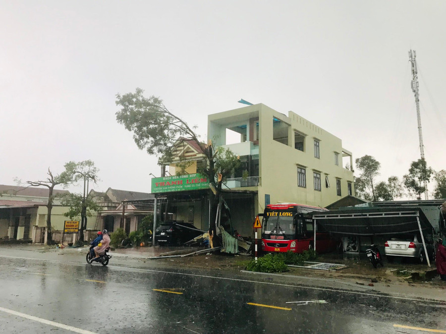 Khoảng 16h ngày 27/9, ghi nhận tại khu phố 3, thị trấn Cửa Việt (huyện Gio Linh, tỉnh Quảng Trị) cho thấy, một số cây xanh bị gãy, nhà cửa và quán xá bị tốc mái do ảnh hưởng của 1 cơn lốc xoáy quét qua.