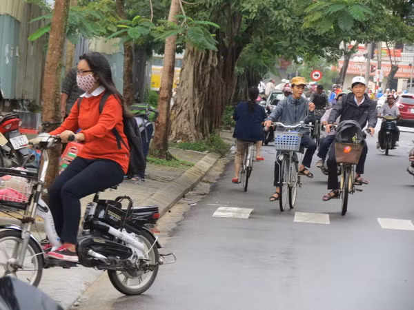 Một em học sinh đi xe đạp điện ở trường THPT Cao Thắng vô tư nói. "Xe đạp điện mấy chú CSGT ít bắt lắm, bọn em đi hoài ngoài đường có khi nào bị dừng xe, xử phạt đâu".