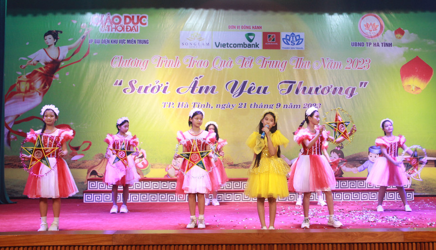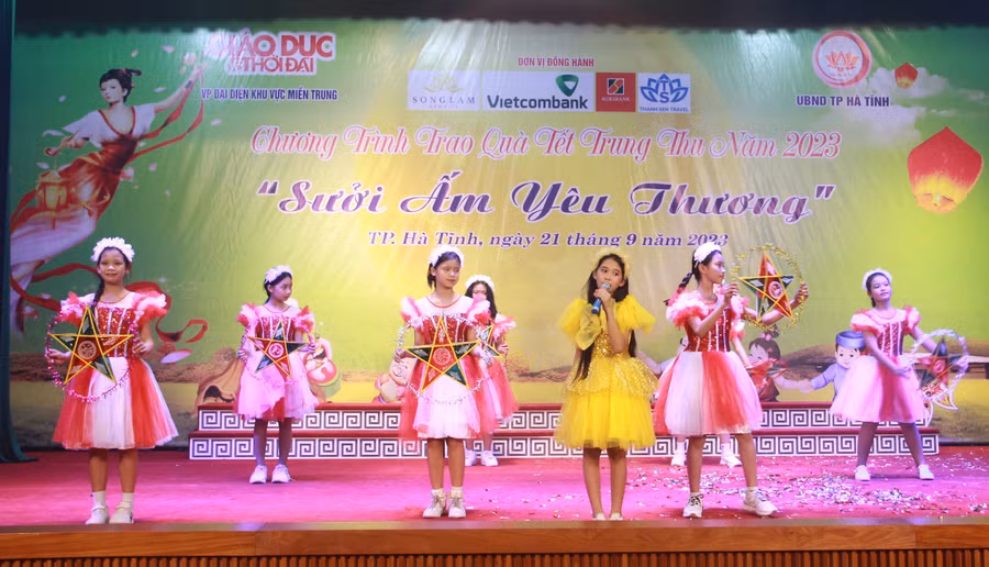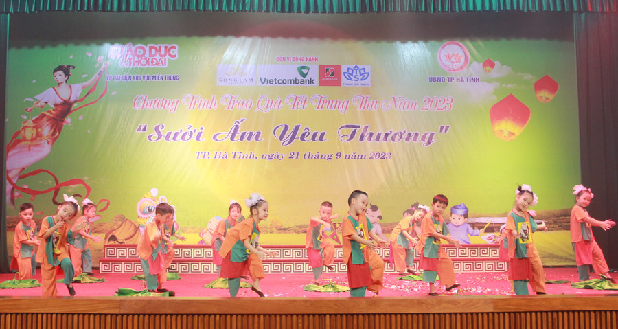 | Những tiết mục văn nghệ vui Tết Trung thu đặc sắc, sôi nổi, do giáo viên và học sinh đến từ các trường Mầm non và Tiểu học TP Hà Tĩnh biểu diễn. |