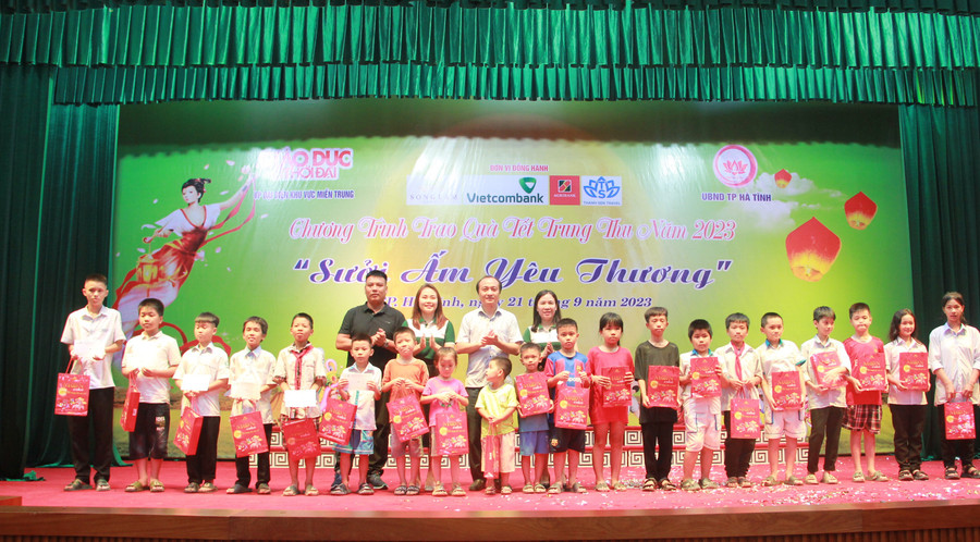 | Tại chương trình, Ban tổ chức đã trao tặng 200 suất quà trị giá 650 ngàn đồng/suất gồm tiền mặt và bánh trung thu cho 200 học sinh có hoàn cảnh khó khăn tại 11 phường xã thuộc TP Hà Tĩnh. |