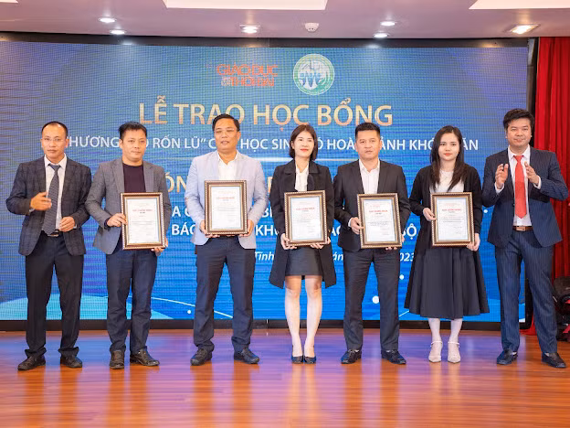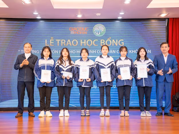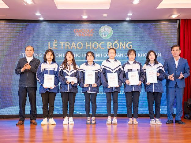 | Lễ trao học bổng còn có sự hiện diện của các nhà tài trợ, giáo viên, học sinh tại 37 trường THPT nhận học bổng trong đợt này. |