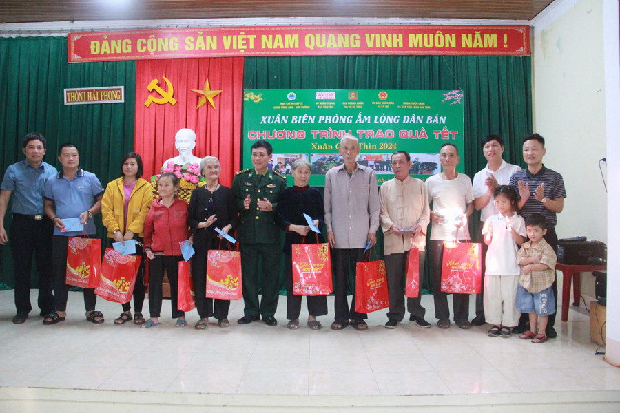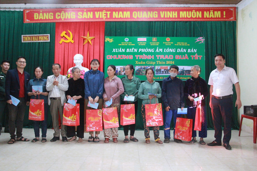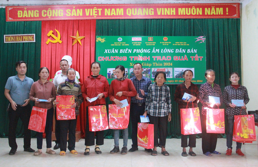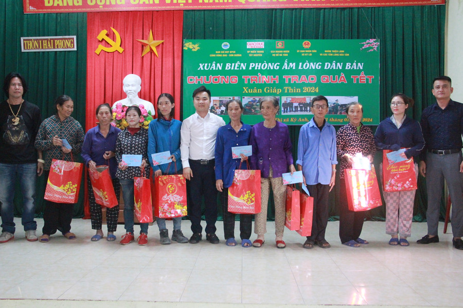 Chiều 21/1, tại nhà văn hóa thôn Hải Phong 1 (xã Kỳ Lợi, thị xã Kỳ Anh, Hà Tĩnh), Ban chỉ huy Biên phòng cửa khẩu cảng Vũng Áng – Sơn Dương phối hợp với VP đại diện Báo GD&TĐ khu vực MT-TN, CLB doanh nhân Họ Hồ Hà Tĩnh, UBND xã Kỳ Lợi và một số nhà hảo tâm tổ chức chương trình "Xuân biên phòng ấm lòng dân bản" trao quà Tết 2024 cho 50 người dân có hoàn cảnh khó khăn ở xã Kỳ Lợi.