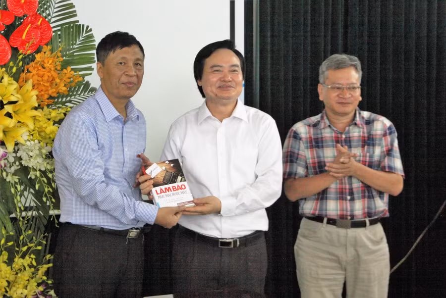 Trong buổi gặp mặt đầy ý nghĩa này, nhận lẵng hoa tươi thắm từ Bộ trưởng, nhà báo Nguyễn Ngọc Nam cũng thay mặt tập thể Báo trân trọng gửi tặng Bộ trưởng cuốn sách Làm báo mực mài nước mắt của nhà báo kỳ cựu Lê Khắc Hoan – Nguyên Phó Tổng Biên tập báo Giáo dục và Thời đại, thể hiện hành trình gần 60 năm đầy tự hào của tờ báo ngành Giáo dục với góc nhìn "người trong cuộc".