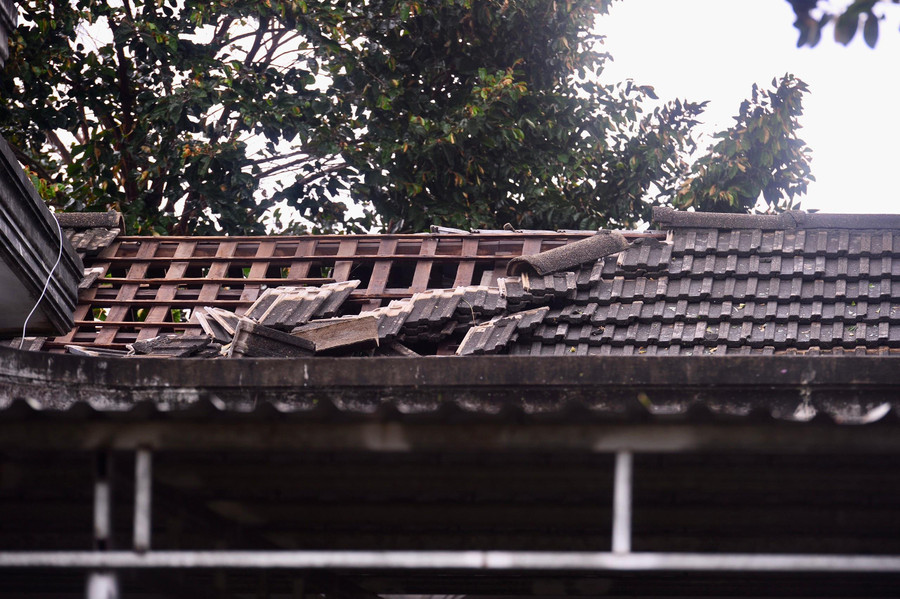 | Một số nhà kiên cố cũng bị gió bão quật bay ngói. |
