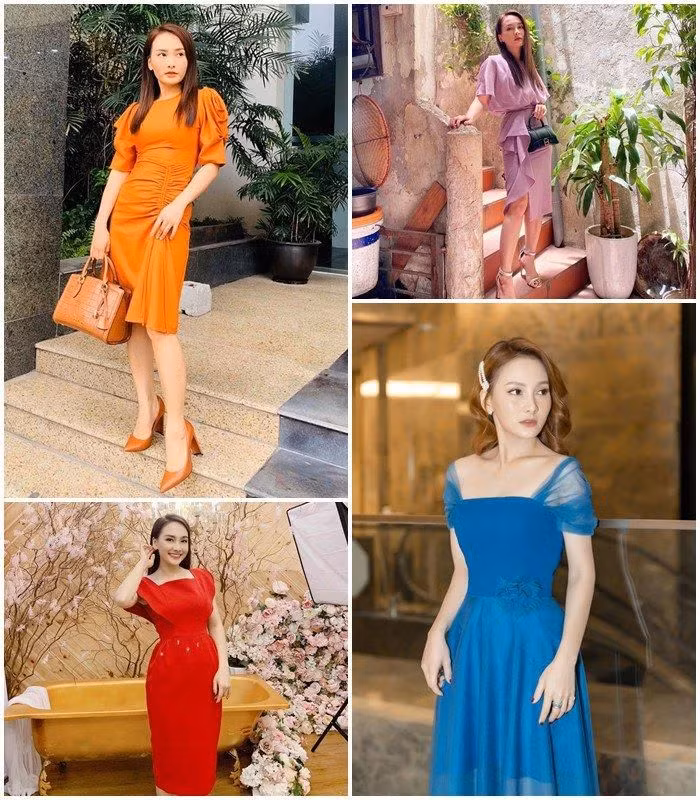 Đầm liền mang tông màu trơn đơn giản, sở hữu những điểm nhấn nhá điệu đà ở phần eo, cánh tay... thường là sự là sự lựa chọn của nữ diễn viên khi xuất hiện trước công chúng.