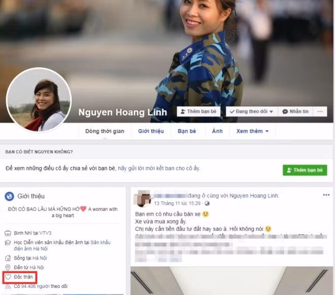 Trong khi đó, BTV Nguyễn Hoàng Linh đã thay đổi trạng thái quan hệ từ "Đã kết hôn" sang "Độc thân".