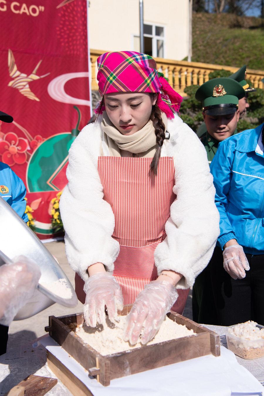 | Lương Thùy Linh không ngần ngại xắn tay áo vào làm cơm cùng các chiến sĩ nơi biên phòng, thêm thắt chặt mối quan hệ giữa dân và bộ đội vùng cao. |