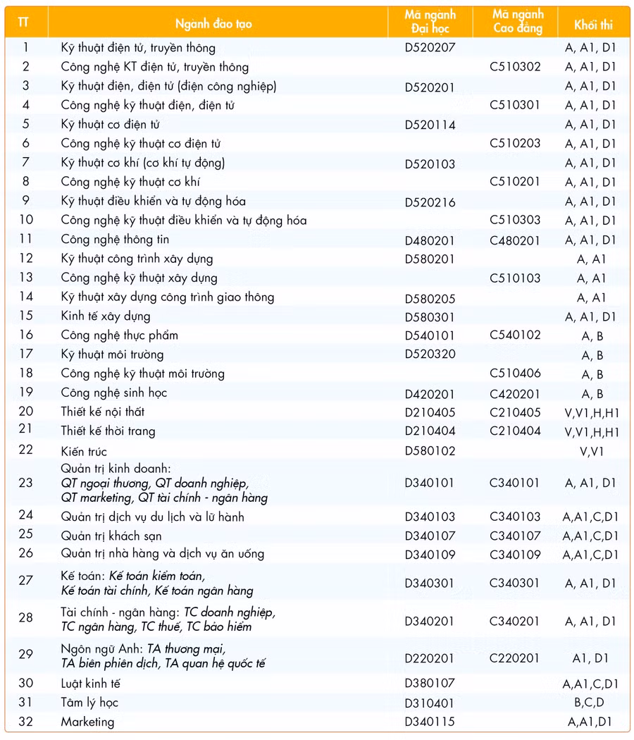 Điều kiện xét tuyển: Đã tốt nghiệp THPT; đạo đức (hạnh kiểm) ba năm THPT xếp loại khá hoặc tốt; điểm trung bình các môn thuộc khối xét tuyển trong 3 năm học THPT đạt từ 6.0 trở lên đối với bậc ĐH và 5.5 trở lên đối với bậc CĐ.