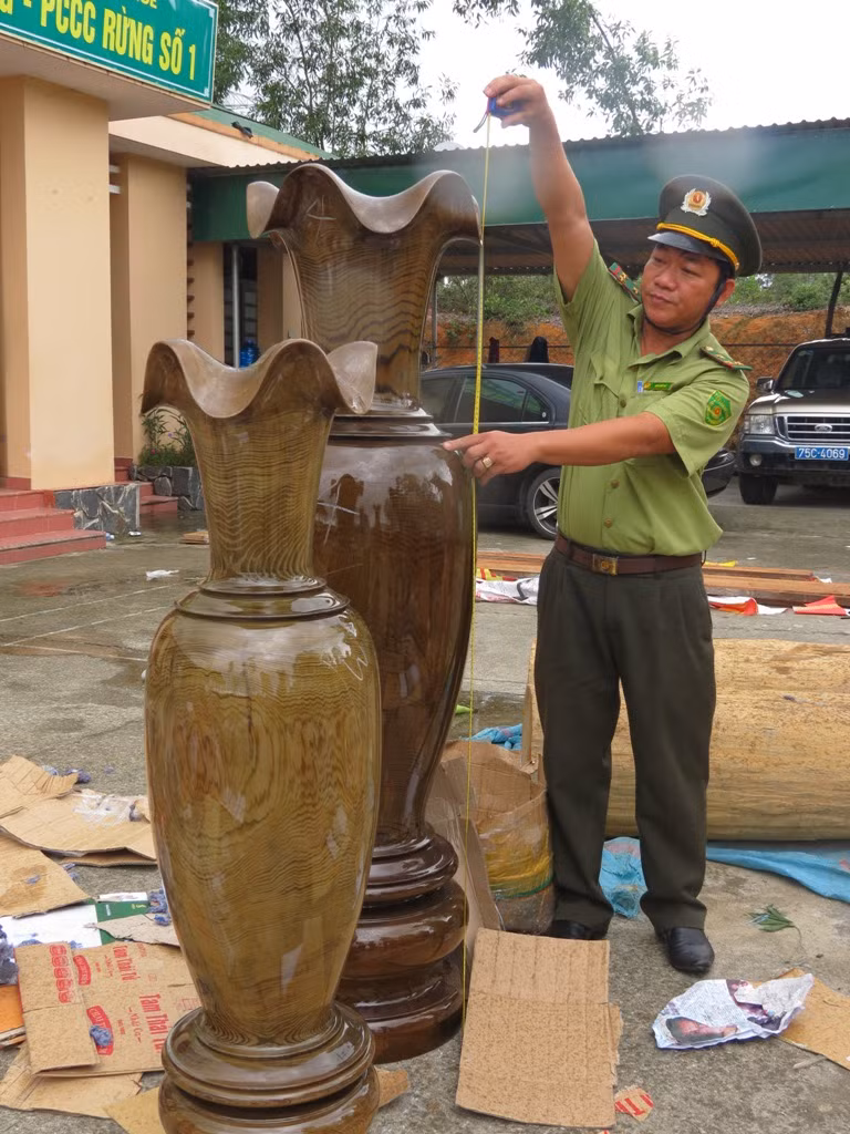 Qua kiểm tra, lực lượng CSGT phát hiện số lượng lớn gỗ quý, gồm: 265 kg gốc rễ gỗ hương (gỗ quý nhóm 1); 0,133m3 gỗ Dổi và 0,124 m3 gỗ cà chắc (đều nhóm 3); 1,242 m3 gỗ thông nàng (nhóm 4)... được cất giấu trong khoang hành lý của xe khách trên tuy nhiên tài xế Sinh không xuất trình được giấy tờ chứng minh nguồn gốc nên lập biên bản thu giữ.