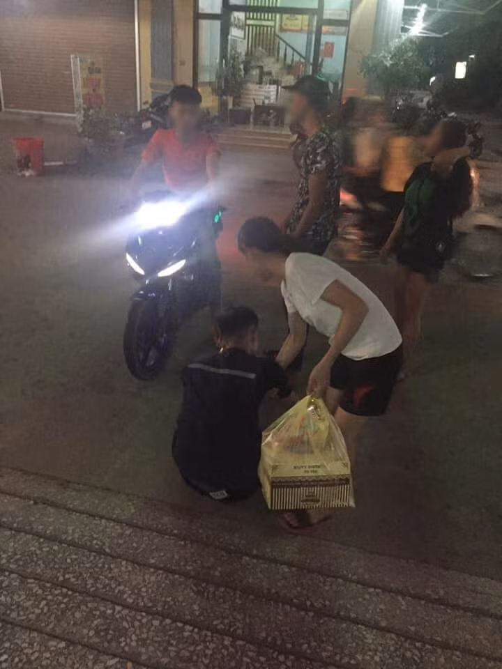 Chàng trai ngồi sụp xuống đường dù cho những người xung quanh ra sức an ủi.