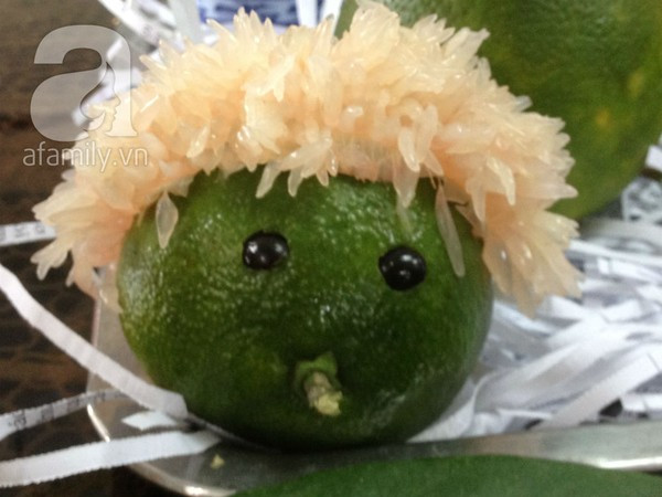 Chú cừu có thân bằng quả cam, lông bằng tép bưởi, mắt bằng hạt nhãn.