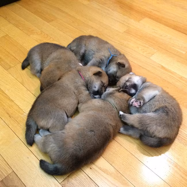5 chú chó shiba đáng yêu này hiện đang sống cùng gia đình chủ nhân tại Sapporo, Nhật Bản.