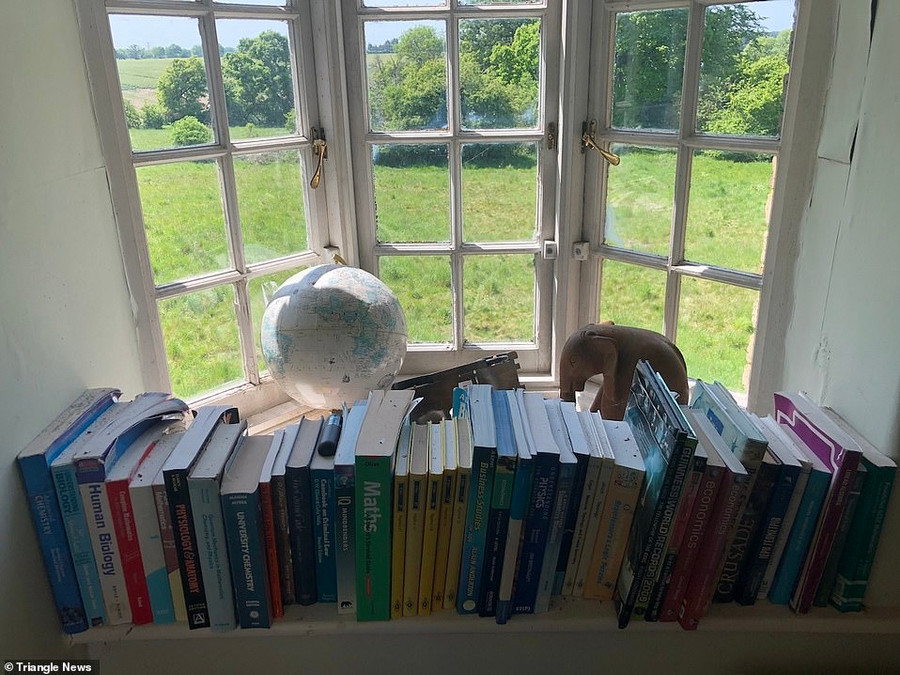 | Hàng dài những cuốn sách được xếp gọn gàng bên khung cửa sổ. Chúng trông vẫn còn như mới và không thường xuyên được chủ nhân đọc. "Tôi chưa từng thấy ngôi nhà bỏ hoang nào như này", nhiếp ảnh gia của Daily Mail nói. |