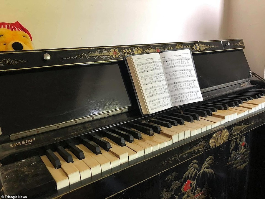 | Gia đình từng ở trong căn biệt thự này cũng có niềm đam mê với âm nhạc. Họ sở hữu một chiếc piano họa tiết kiểu Nhật Bản trong nhà. |
