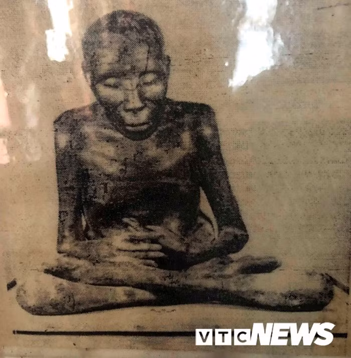 Nhục thân thiền sư Vũ Khắc Minh khi mới phát hiện trong bảo tháp.