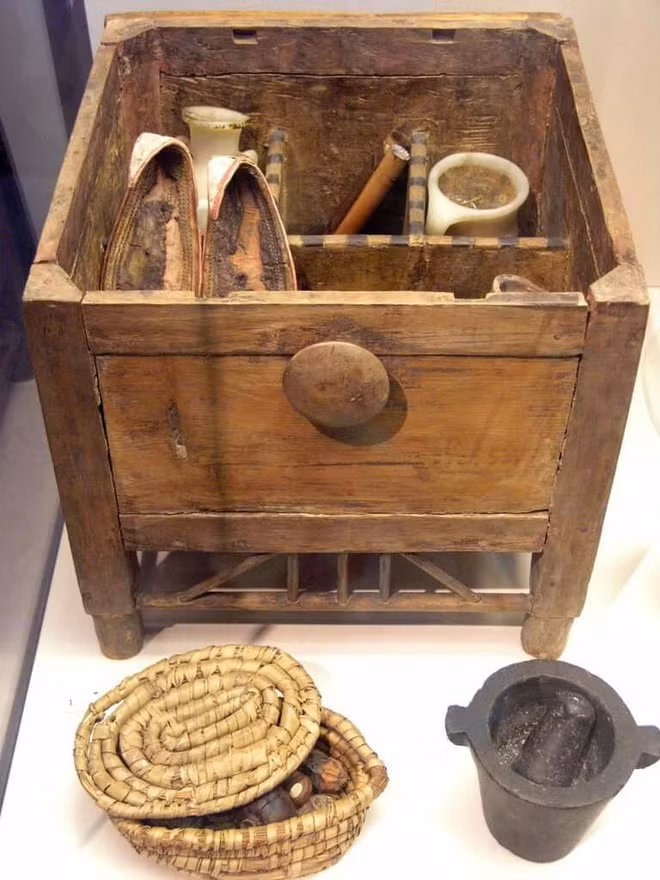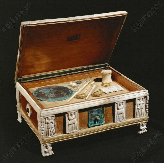 | Một số hộp gỗ đựng mỹ phẩm chạm khắc tinh tế của người xưa được các nhà khảo cổ học tìm thấy. Ảnh: reneeyancy, akgimage. |