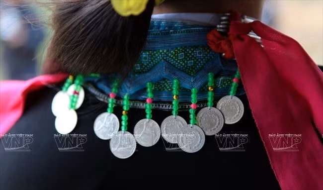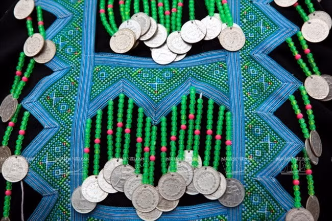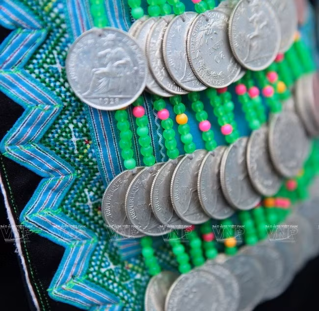 Đặc biệt, trong những đồ trang sức gắn lên váy áo người phụ nữ Mông xanh có rất nhiều đồng bạc.