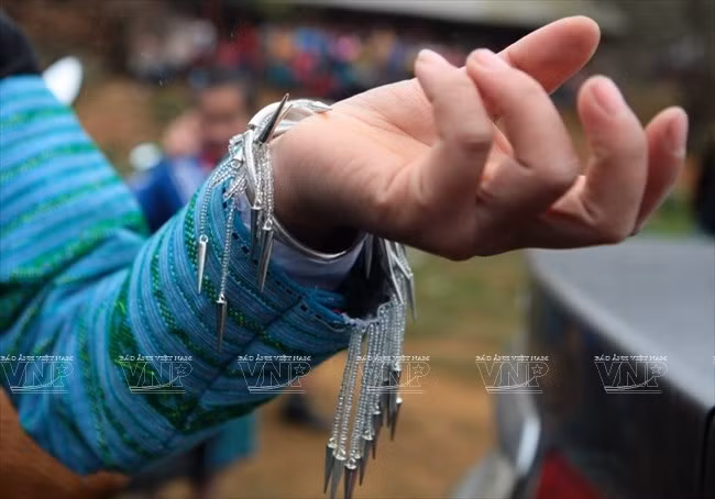Vòng tay của phụ nữ Mông xanh thường được chạm bạc với các hình khác nhau dùng để trang trí cho bộ trang phục thêm đặc sắc.