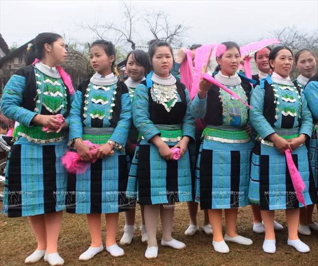 Vào ngày lễ, Tết, những cô gái Mông xanh thường đeo trang sức đi kèm bộ trang phục để đi chơi tạo nên sắc màu lạ mắt, khác biệt trong cộng đồng người Mông ở Tây Bắc./.