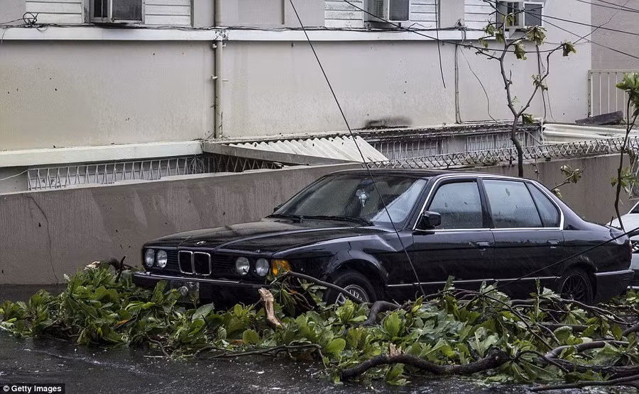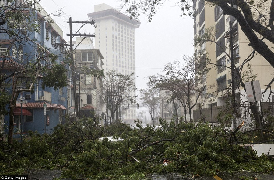 Khi mọi người phải trú ẩn trong gầm cầu thang, phòng tắm, bão Maria đã gây đổ những ngọn tháp, đường dây điện, cây cối và dội xuống một lượng mưa ít nhất là 20cm.
