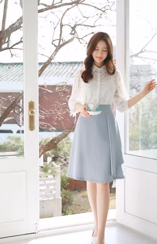 Bạn cũng có thể chọn trang phục có thắt lưng, nhưng đừng thắt quá chặt, chọn kiểu có thắt lưng trông thật tự nhiên. Vòng eo cao và tỉ lệ cơ thể cân đối, khi tỉ lệ cơ thể cân đối thì tự nhiên sẽ đẹp hơn rất nhiều.