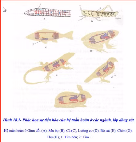 Quan sát tổng thể để biết đó là tranh phác họa sự tiến hóa của hệ tuần hoàn ở các ngành, lớp động vật:
