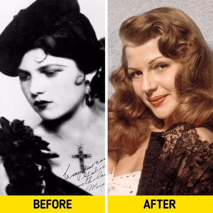 Rita Hayworth có nguồn gốc Tây Ban Nha nên có mái gái tóc nâu. Để đáp ứng tiêu chuẩn sắc đẹp của Hollywood và nhận được nhiều vai diễn quan trọng hơn, cô phải nhuộm tóc đỏ và làm điện phân.