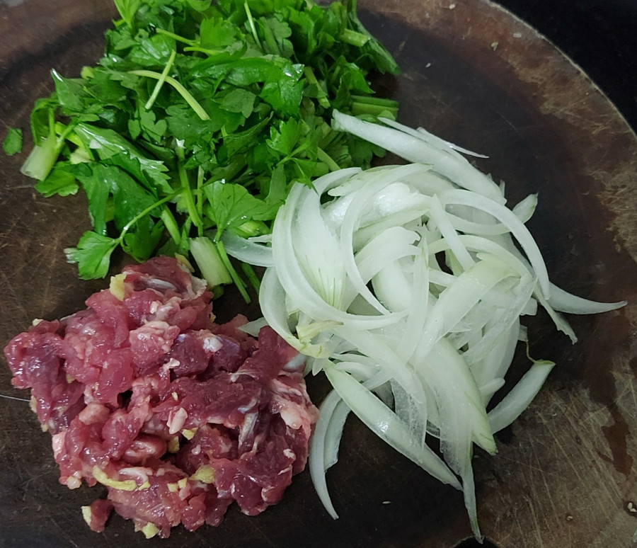“Chỉ là, mẹ trần nhanh phở bằng nước đun sôi cho sợi tách ra, ướp vừa gia vị (bột canh, hạt tiêu, nước mắm hoặc cả nước ớt lọc từ ớt tươi…). Trút chúng vào chảo thịt bò cùng hành tây, cần tây (hoặc thêm cà rốt, xu hào…) đã xào chín rồi đảo đều nhưng phải thật… khẽ khàng và vừa vặn.