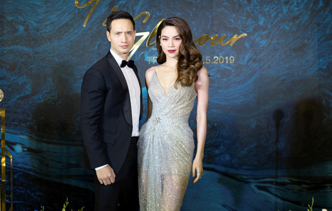 | Hồ Ngọc Hà được Kim Lý tháp tùng đi diễn. Cặp đôi "dính như sam" từ khi công khai tình cảm. |