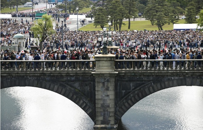 Người dân đã xếp hàng nhiều giờ để được nhìn thấy tân Nhật hoàng và gia đình ông đứng trên một ban công và vẫy tay với đám đông phía dưới. Thông thường những sự chào mừng thế này chỉ diễn ra trong lễ mừng năm mới hay vào ngày sinh nhật của Nhật hoàng.