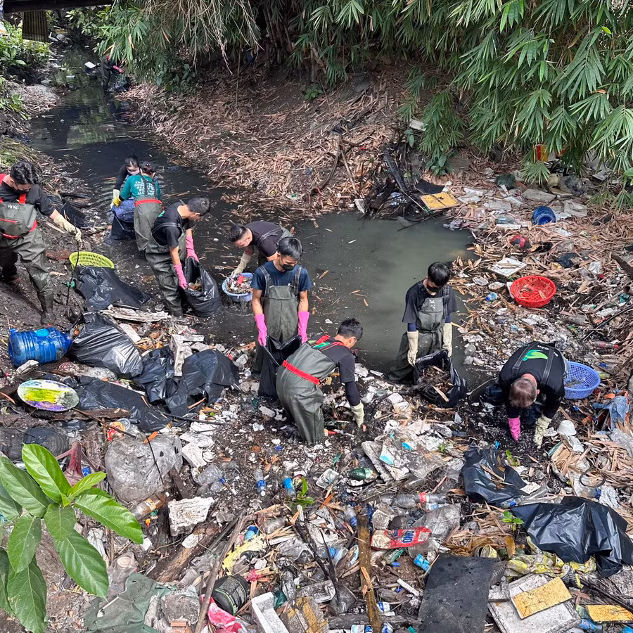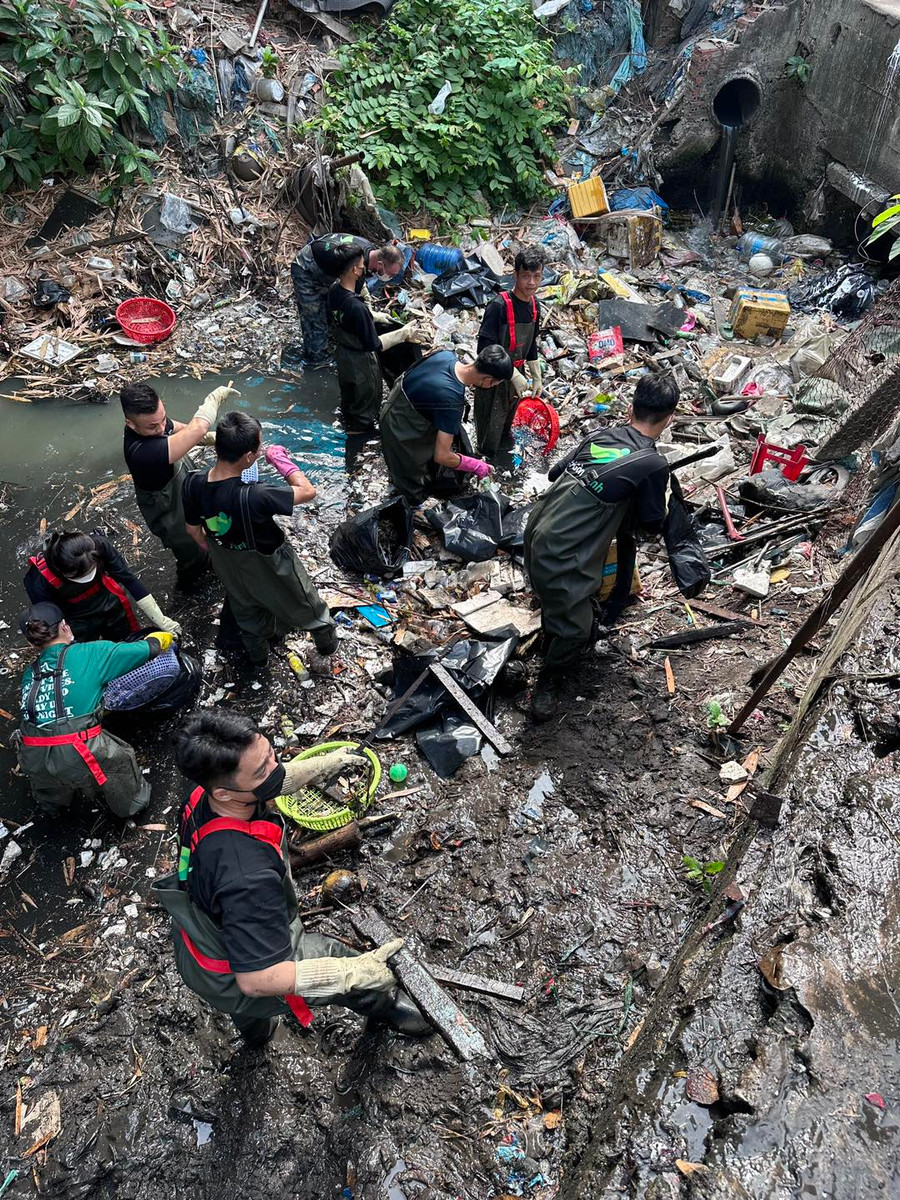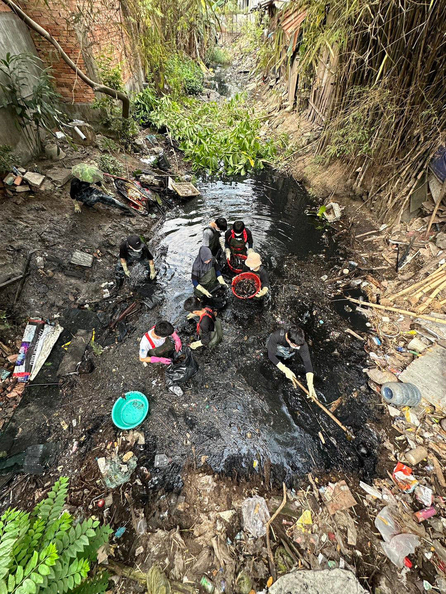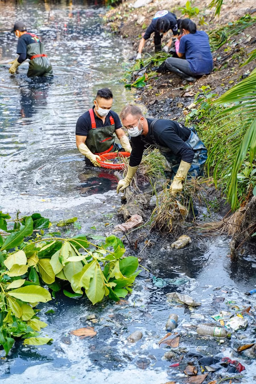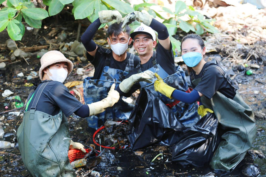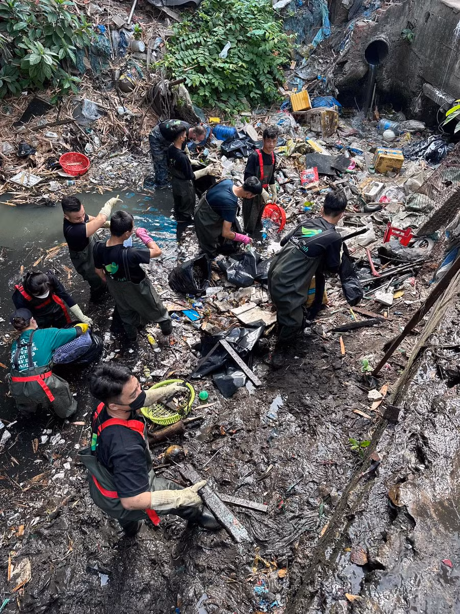 Kênh đen như mực, nước đặc sánh, thối đến bịt khẩu trang vẫn muốn ói mửa. Tuy nhiên, đã được lên dây cót tinh thần, các thành viên của nhóm đã hứng khởi trầm mình xuống “dòng nước dữ”.