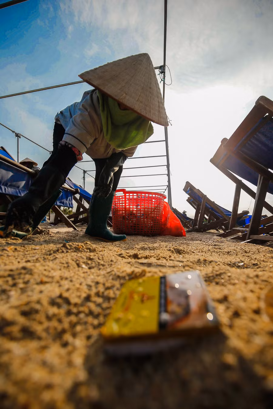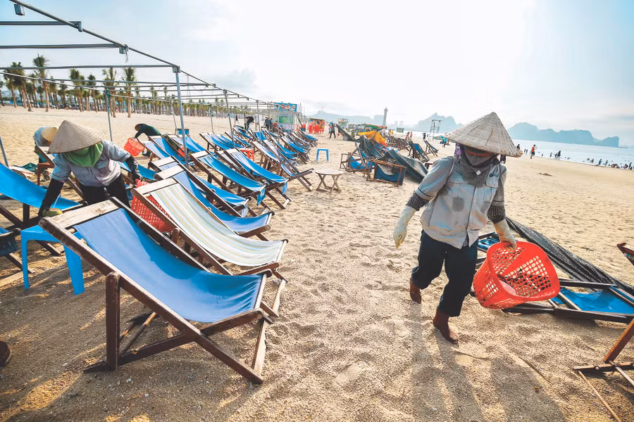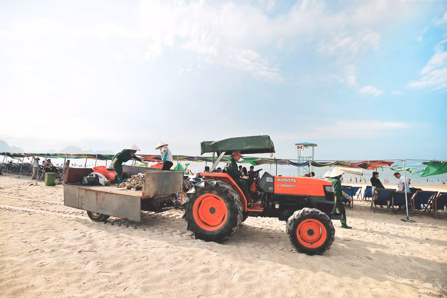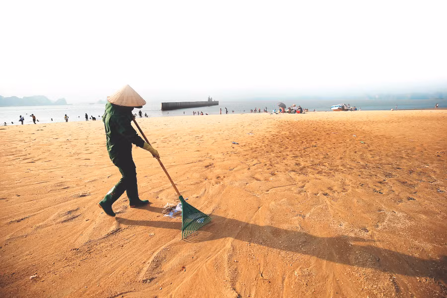 Mỗi ngày trôi đi, những con người âm thầm làm sạch bãi biển khi những dòng khách du lịch đã nghĩ ngơi. Bất kể nắng hay mưa, đội công nhân dọn rác vẫn cần mẫn làm công việc của mình để mang lại một bãi biển sạch, đẹp trong mắt khách du lịch.