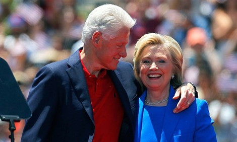 Bà Hillary Clinton - ứng cử viên cho vị trí Tổng thống Mỹ 2016 - trong vòng tay chồng tại New York.