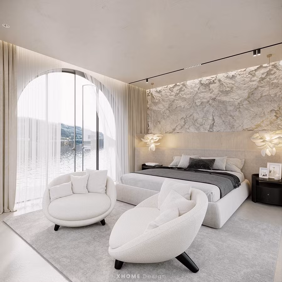 Nam diễn viên tiết lộ vì diện tích ngôi nhà khá nhỏ, chưa tới 16m2/phòng, nên cặp đôi cần tận dụng tối đa không gian với một thiết kế mở để phù hợp với sở thích nghỉ dưỡng của vợ chồng và 3 bé mèo cưng chơi đùa.