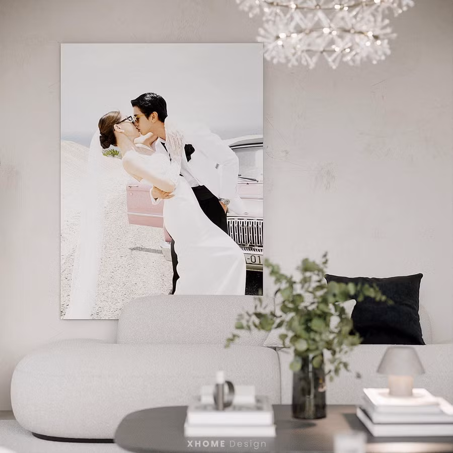 | Ảnh cưới hạnh phúc của cặp đôi được treo ở nhiều phòng. |