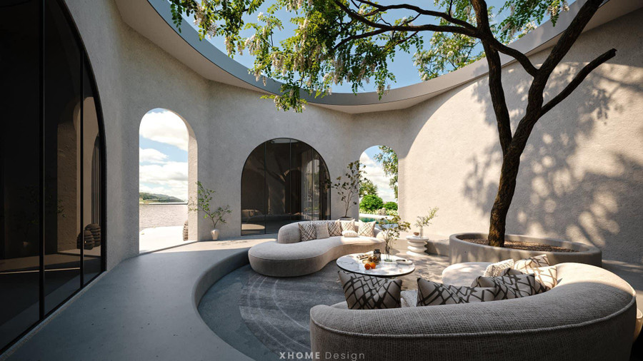 Qua những bức ảnh được Bình An đăng tải, có thể thấy căn nhà của cặp đôi có một tầng được thiết kế theo phong cách hiện đại với tông màu trắng chủ đạo. Không gian ngôi nhà rộng rãi thoáng đãng. Phía ngoài căn nhà có mảnh vườn nhỏ và một mặt giáp hồ để cặp uyên ương có thể thưởng trà ngắm hoa hưởng không khí trong lành.