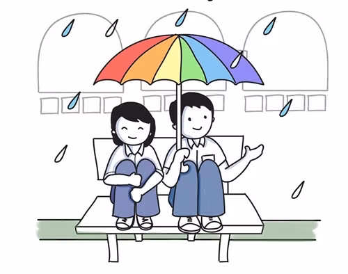 Những chiều mưa, bạn bè kéo nhau ngồi dưới hàng ghế đá ngắm mưa vô cùng lãng mạn.
