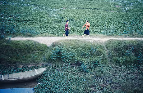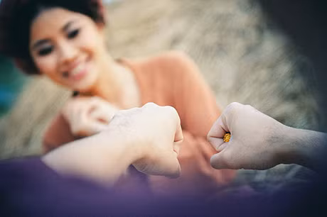 Nhiếp ảnh Hải Tre chia sẻ: "Đôi bạn trẻ này nhiều năm sống và làm việc tại nước ngoài nên mong muốn có được chút hương vị quê hương qua bộ ảnh cưới. Chúng tôi lấy ý tưởng từ những trò chơi dân gian Việt Nam để tạo hành hai người cùng nhau chơi đùa, vừa giản dị, vừa ngọt ngào".