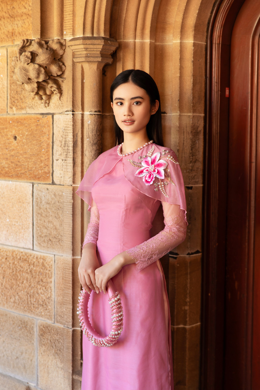 | Hoa hậu Ý Nhi diện áo dài truyền thống tại Úc trước thềm Tết Nguyên đán. |