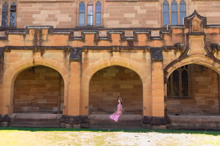 Hoa hậu Ý Nhi khoe nét đẹp dịu dàng ngay trong khuôn viên trường Đại học Sydney mà cô đang theo học. Được biết, ngôi trường này nằm trong Top 20 các trường Đại học tốt trên thế giới.