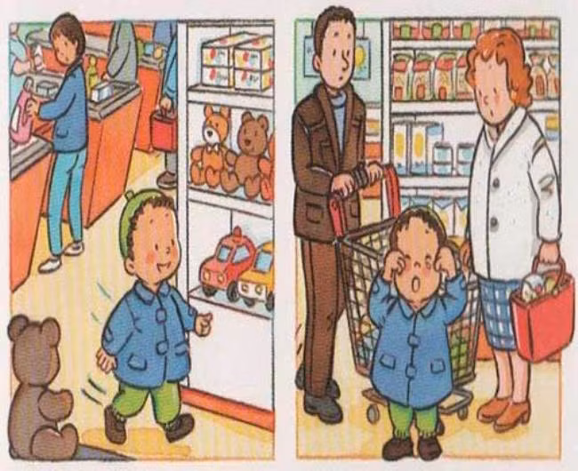 Đi siêu thị phải luôn theo sát cha mẹ.