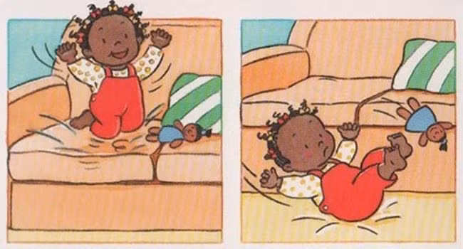 Nhún nhảy trên ghế sofa, con có thể bị trượt chân.