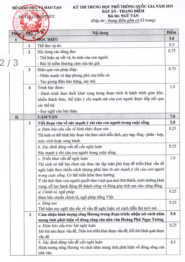 GD&TĐ - Đáp án chính thức môn Ngữ văn của kỳ thi THPT quốc gia năm 2019 đã được Bộ GD-ĐT công bố. Đây là môn đầu tiên công bố đáp án.